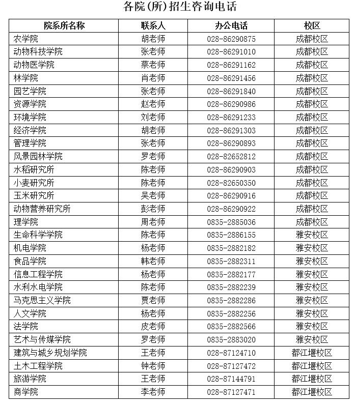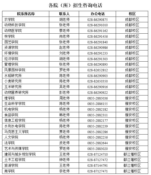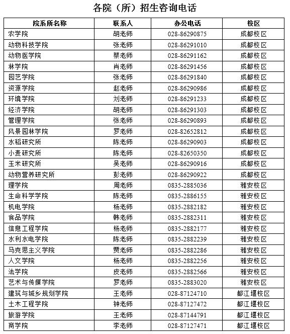 3.各院所招生咨询电话