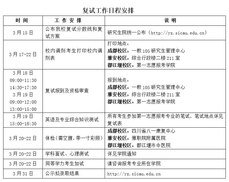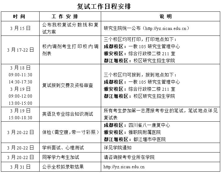 2.复试工作日程安排