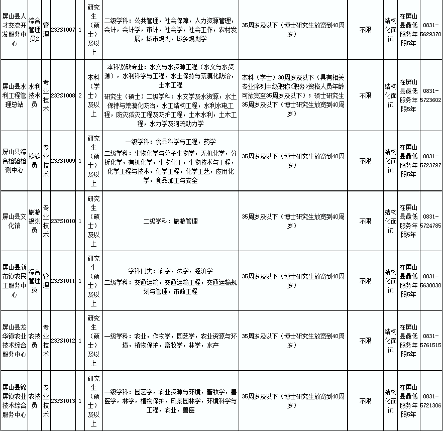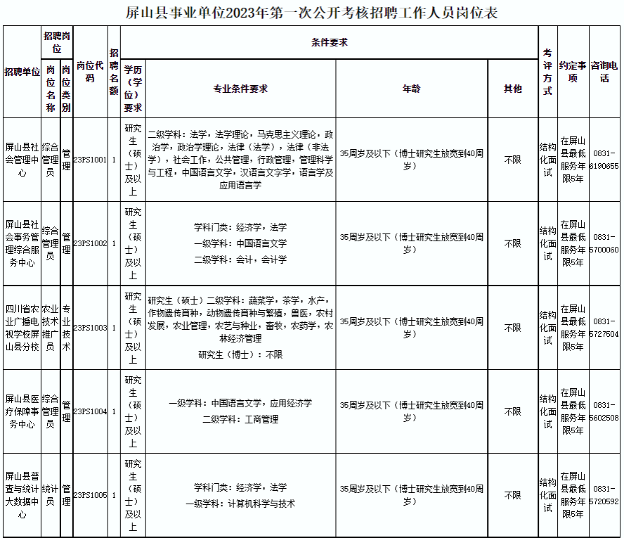 附件:1.屏山县事业单位2023年第一次公开考核招聘工作人员岗位表