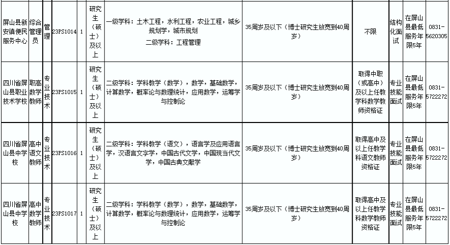 屏山县人力资源和社会保障局事业单位人事管理股:0831-5629365。