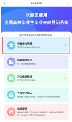 去向填报包括签就业协议书就业、其他形式就业、升学、未就业,毕业生应在登记系统上提前仔细阅读“高校毕业生毕业去向分类及证明材料”说明,根据自身实际情况准确选择毕业去向类型并填报相关信息。